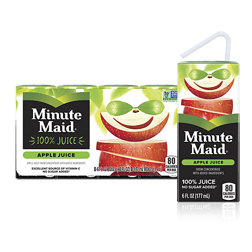 Bring the juice with Minute Maid. Each sip of Minute Maid 100% Apple Juice bursts with the crisp, sweet taste of apples you know and love. It's a timeless favorite that brings a smile to your day and goodness to your family, one glass at a time.